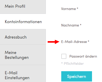 Einfach im Eingabefeld E-Mail-Adresse Ihre neue Adresse eingeben und auf 'Speichern' klicken.