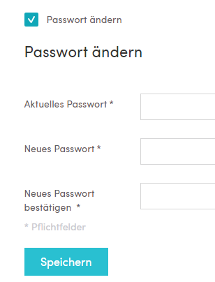 Möchten Sie Ihr Passwort ändern, so einfach das Kästchen anklicken vor 'Passwort ändern' und ein neuer Menüpinkt öffnet sich:
