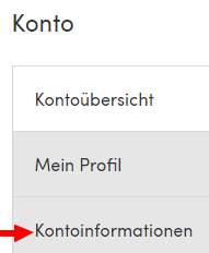 Um Ihre Benutzerdaten zu ändern, melden Sie sich zuerst in Ihrem Konto an. Dann gehen Sie unter den Menüpunkt 'Konto'.